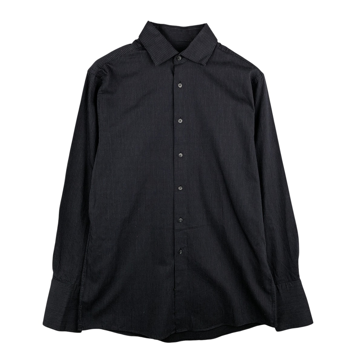 古着 カルバンクライン Calvin Klein 長袖シャツ ワンポイント ロゴ 大きいサイズ ボタンシャツ 14041 ブラック ストライプ メンズ