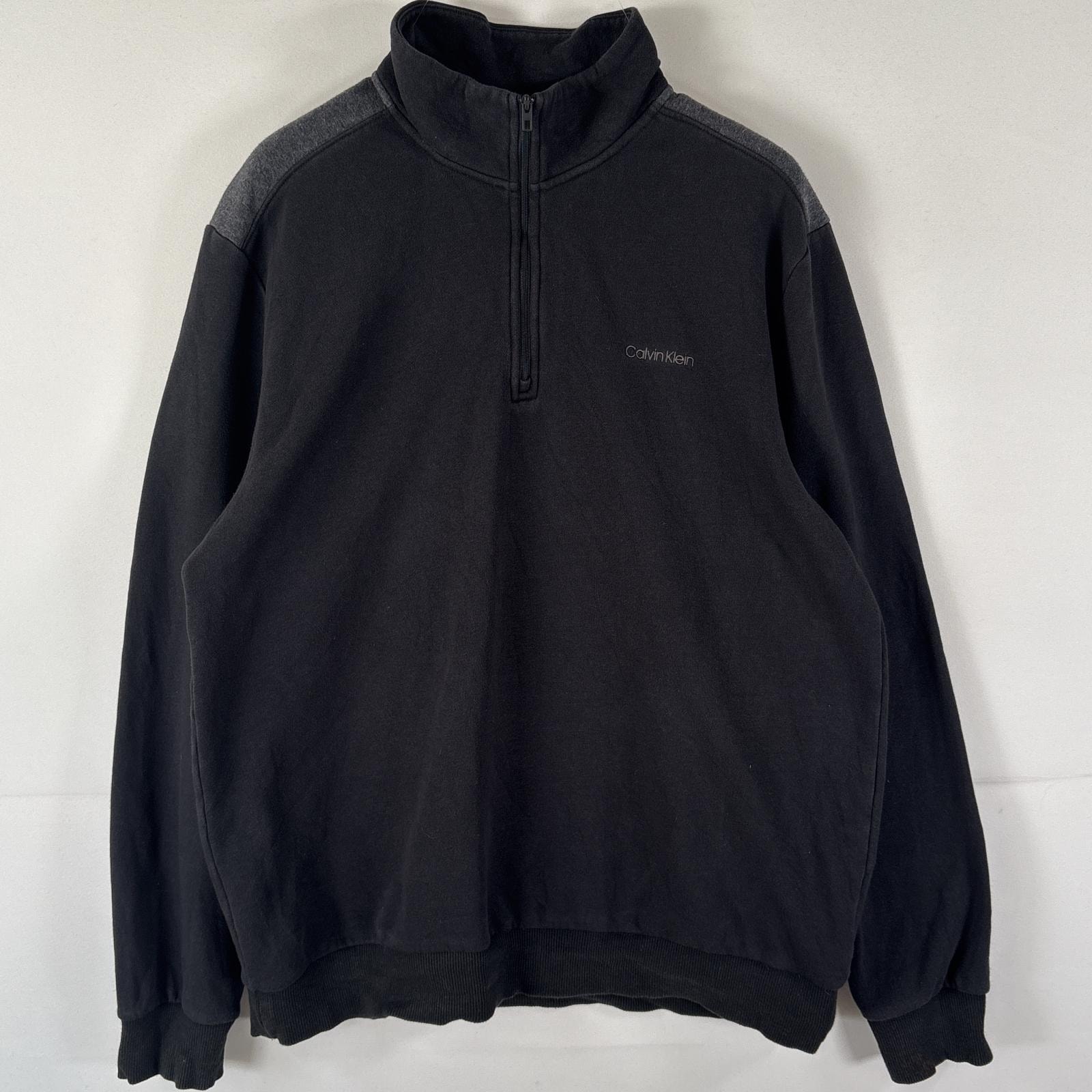 古着 カルバンクライン Calvin Klein スウェット ハーフジップ トレーナー プルオーバー ワンポイントロゴ L ブラック メンズ