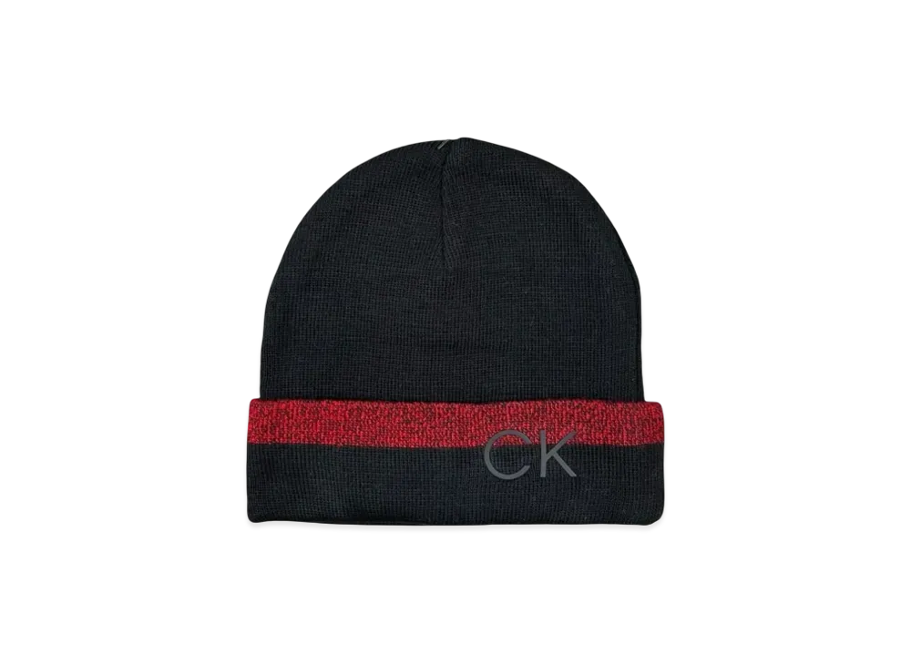 Calvin Klein Stripped Printed Logo Cuff Beanie "Black/Red"