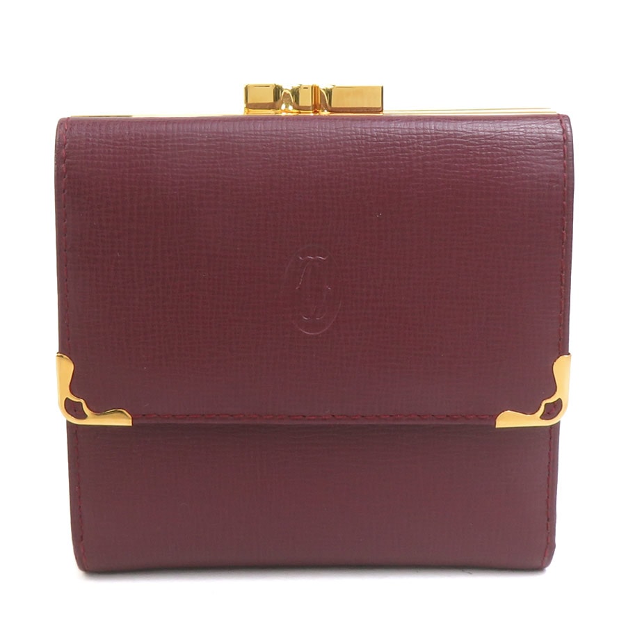 【6cd5276】カルティエ 三つ折り財布 マスト レザー ボルドー ゴールド金具【中古】レディース