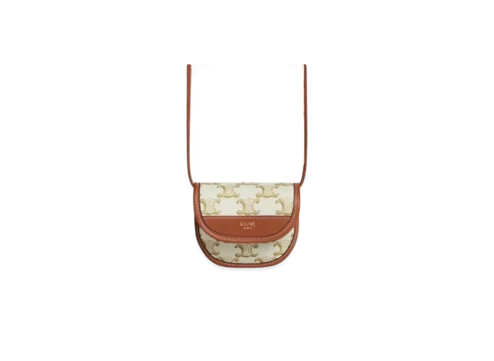 CELINE Phone Pouch with Flap in Triomphe Canvas and Lambskin "White/Tan"