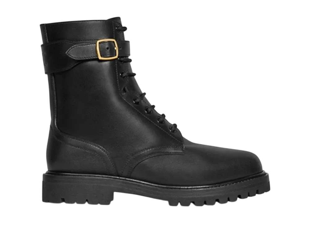 CELINE Women's Kurt Lace-Up Mid Boot In Calfskin - Vegetal Tanning "Black"