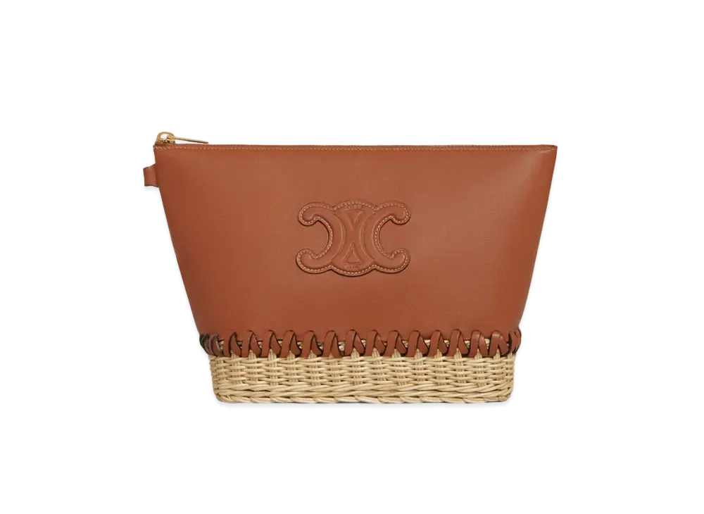 CELINE Triomphe Pouch in Lambskin and Wicker "Tan"