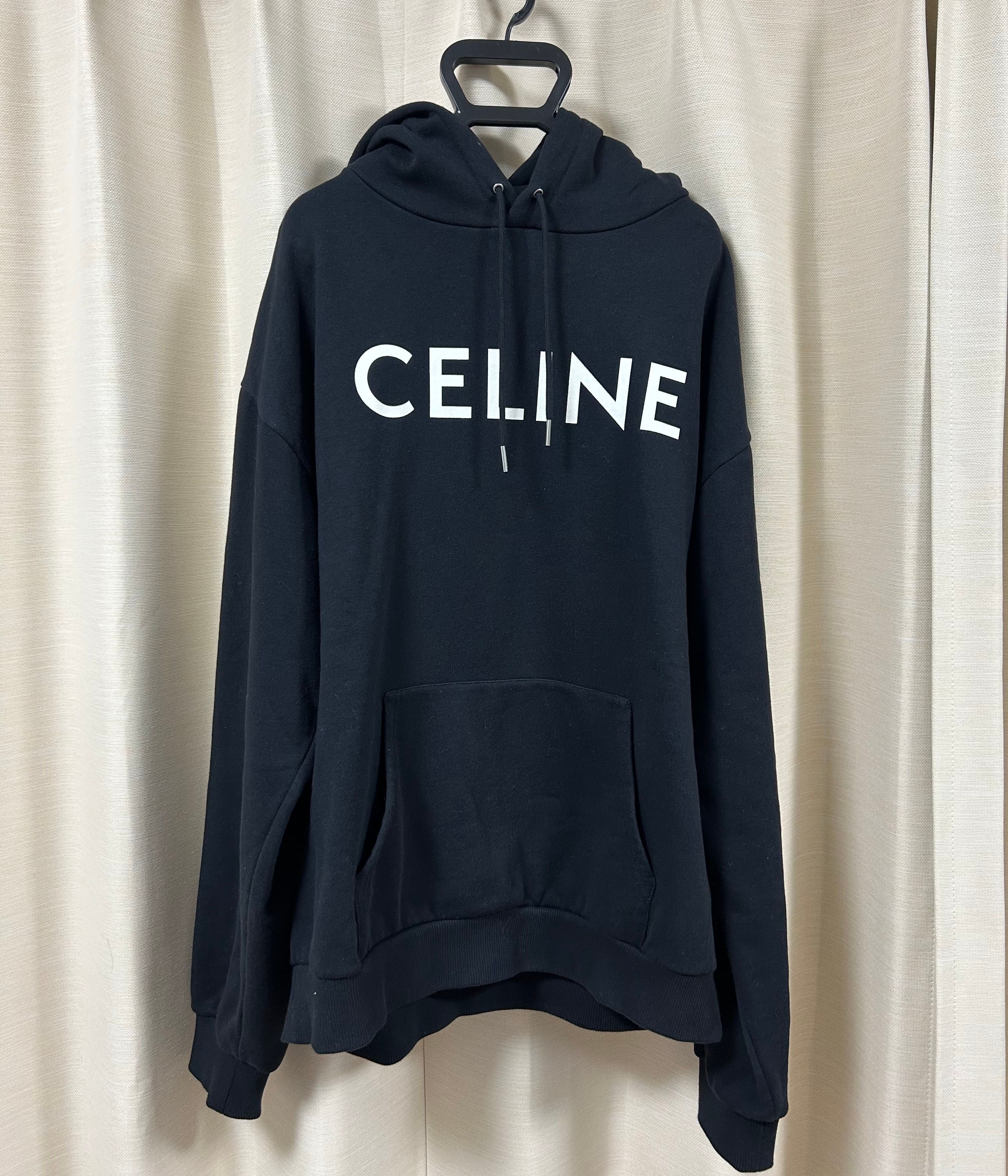 CELINE Logo Print Cotton Hoodie Sweatshirt "Black"