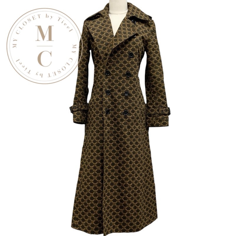 セリーヌ CELINE アウター ロングコート トレンチコート トリオンフ 総柄 コットン ブラウン