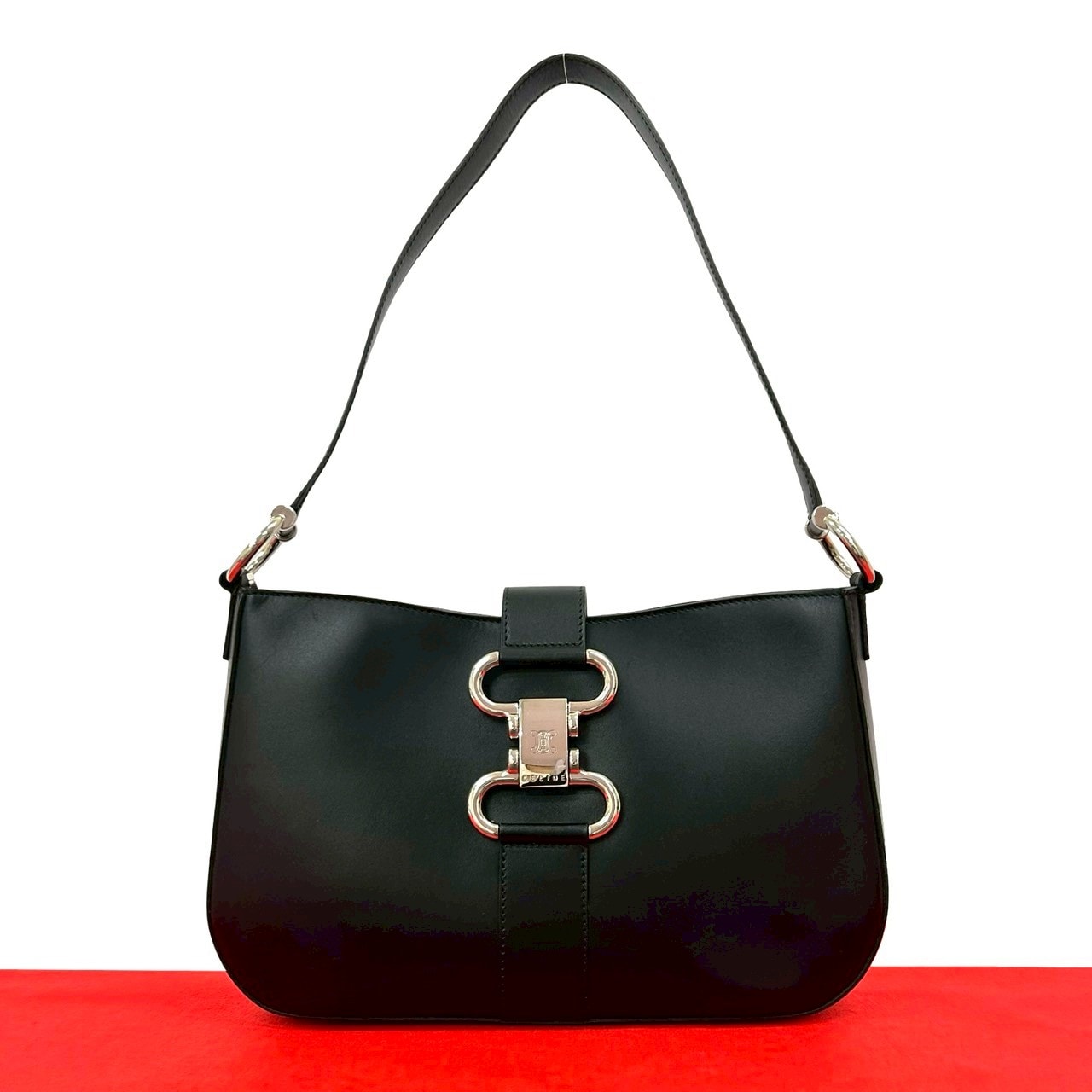 CELINE セリーヌ トリオンフ ロゴ 金具 レザー ショルダーバッグ ブラック