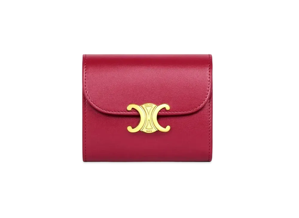 CELINE Triomphe Small Flap Wallet In Shiny Calfskin "Carmin"