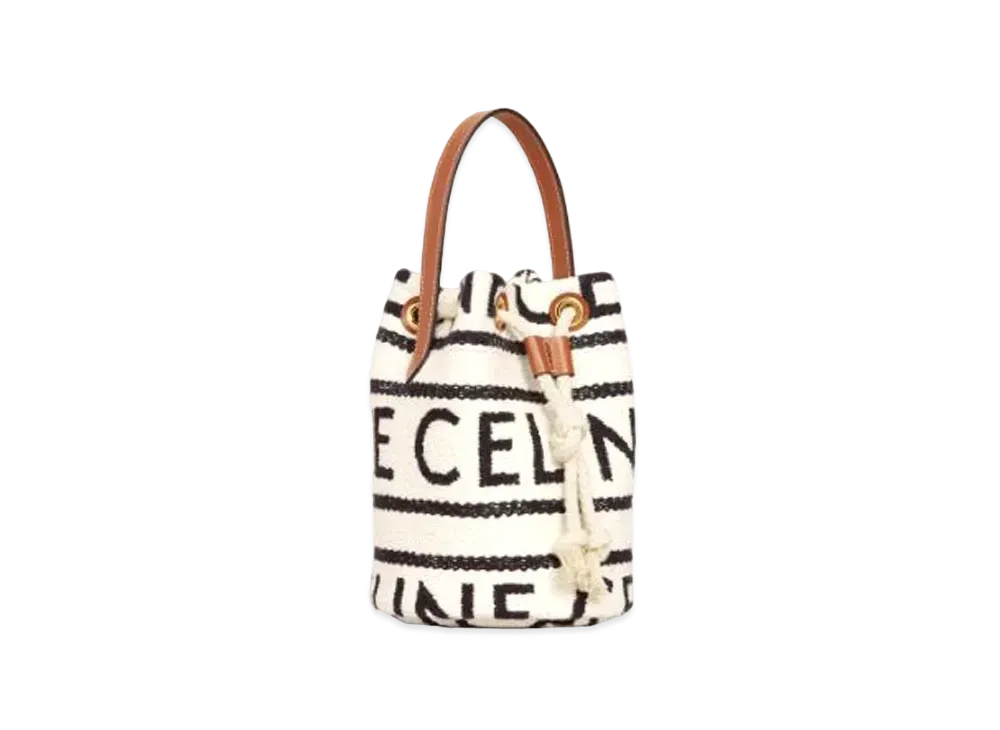 CELINE Teen Drawstring In Textile With Celine All-Over And Calfskin "White/Black"