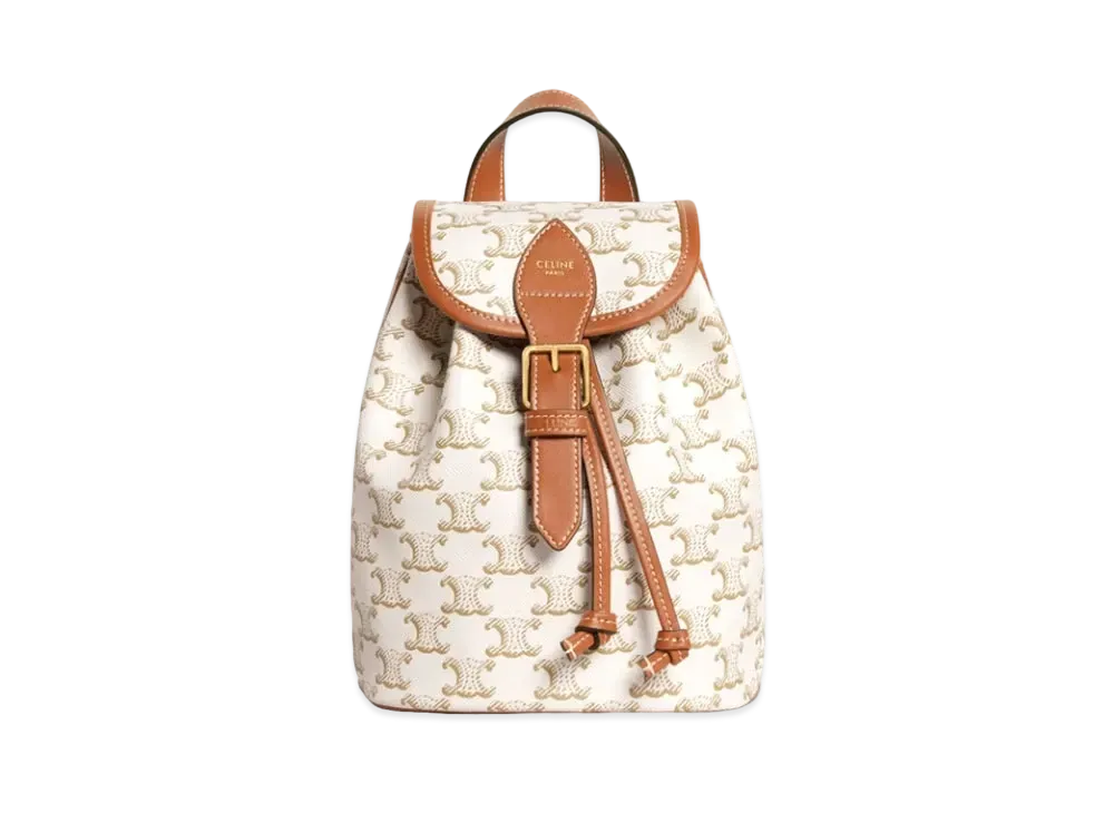 CELINE Mini Backpack Folco In Triomphe Canvas And Calfskin "White"