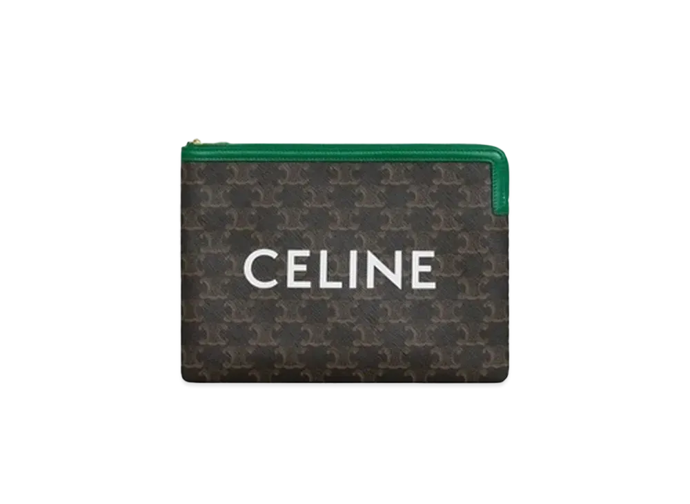 CELINE Small Pouch in Triomphe Canvas and Lambskin "Emerald"