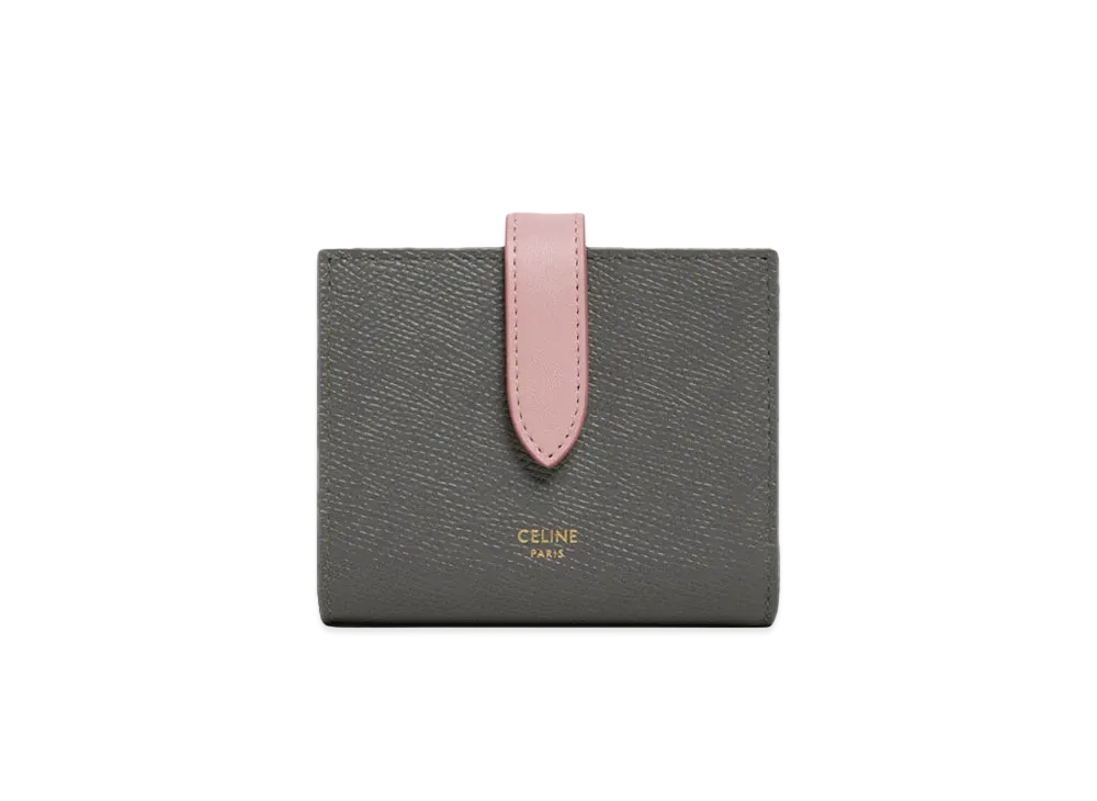 CELINE Small Strap Wallet in Bicolour Grained Calfskin "Grey/Vintage Pink"