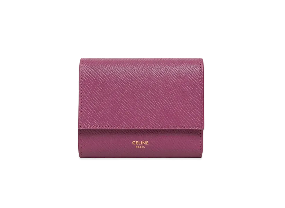 CELINE Small Trifold Wallet In Grained Calfskin "Wild Berry"