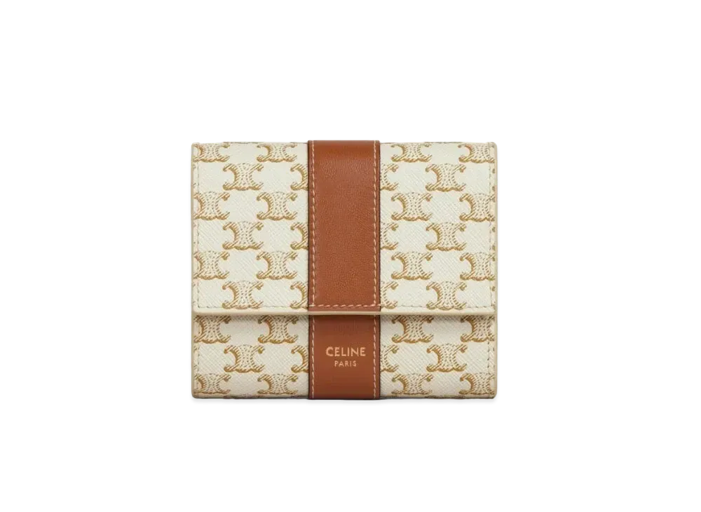 CELINE Small Trifold Wallet In Triomphe Canvas And Lambskin "White/TAN"
