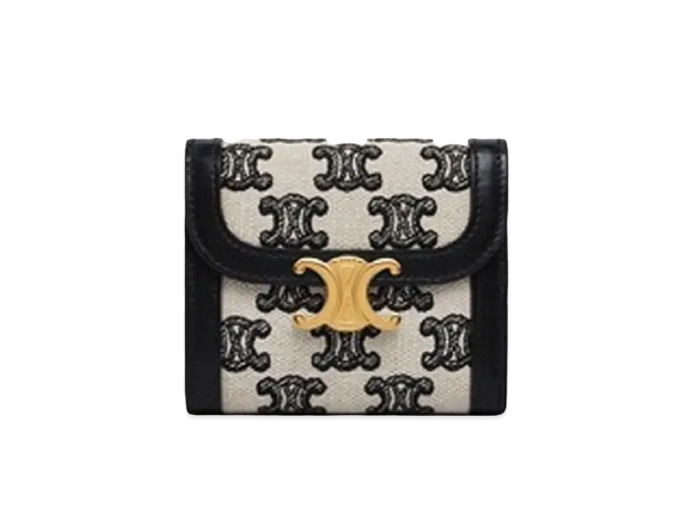 CELINE Small Triomphe Wallet in Textile with Triomphe Embroidery "Black"