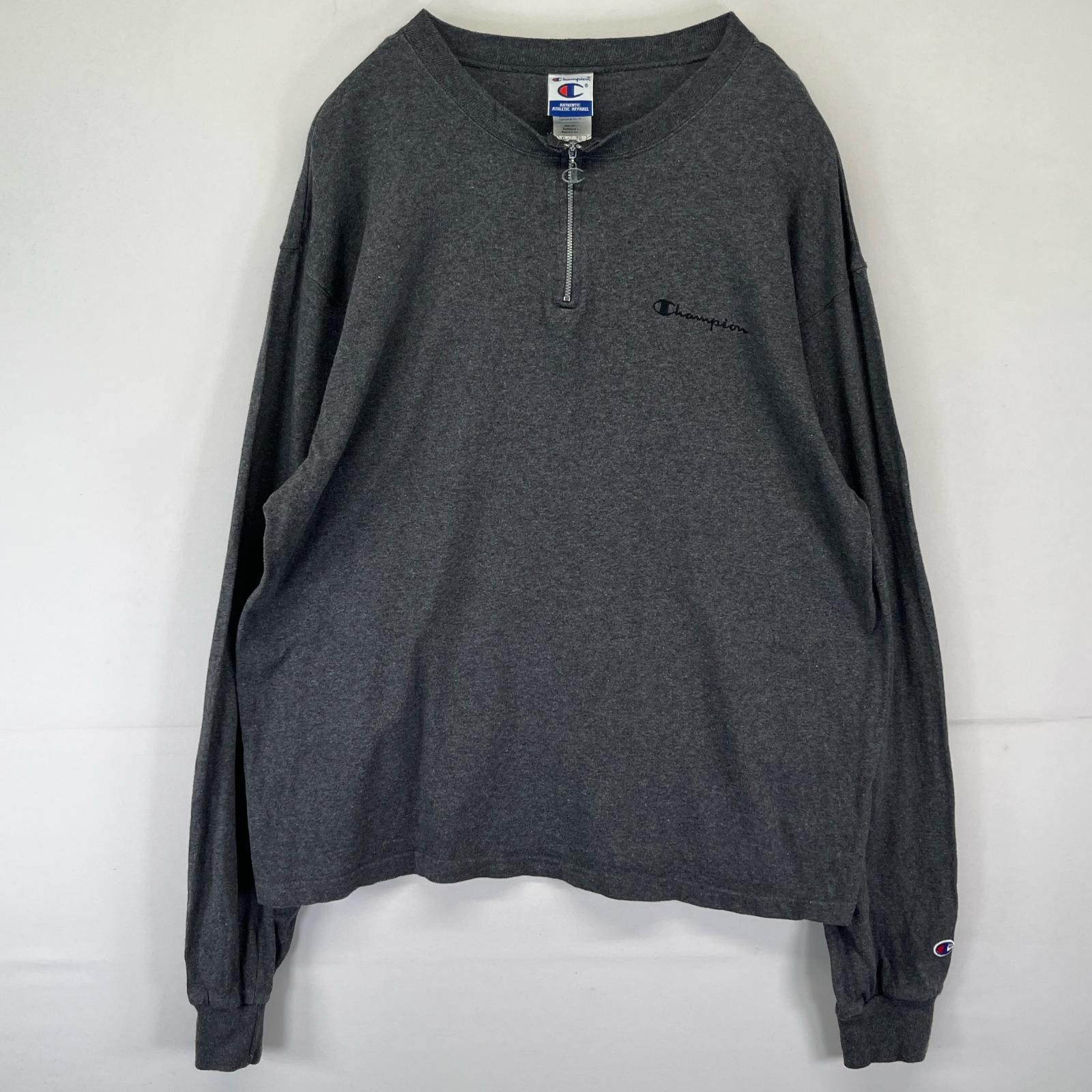 古着 90's/90年代 チャンピオン Champion 長袖Tシャツ ロンT ハーフジップ 大きいサイズ ワンポイントロゴ グレー メンズ