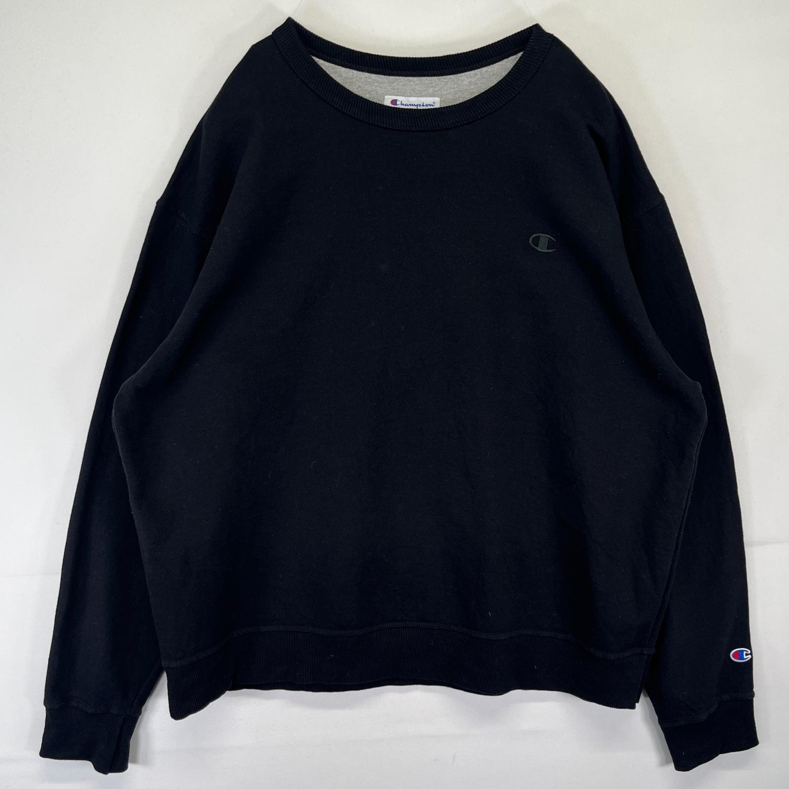古着 チャンピオン Champion スウェット トレーナー ワンポイントロゴ クルーネック プルオーバー 大きいサイズ 2XL ブラック メンズ