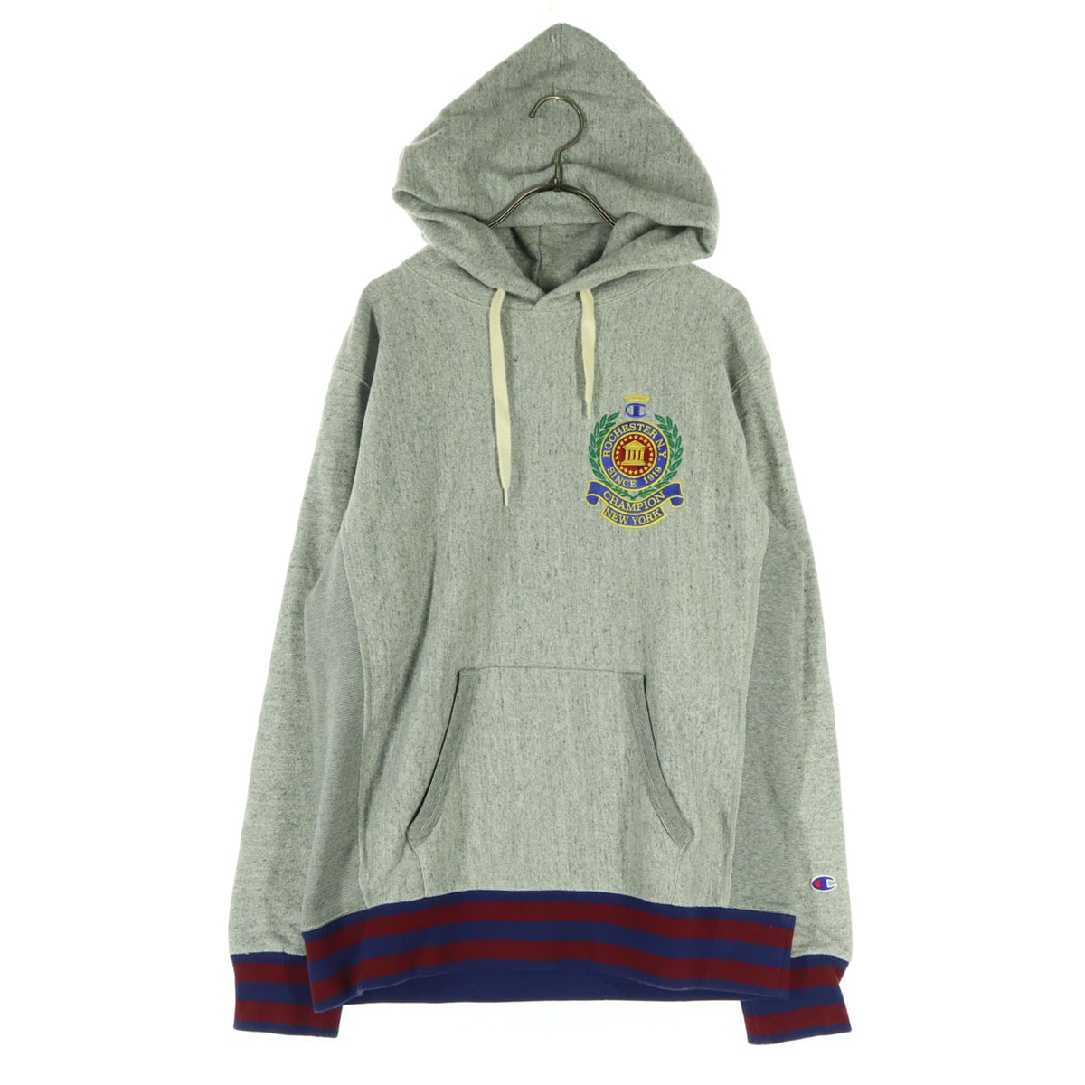 Champion チャンピオン ワッペン 長袖 スウェットパーカー L グレー