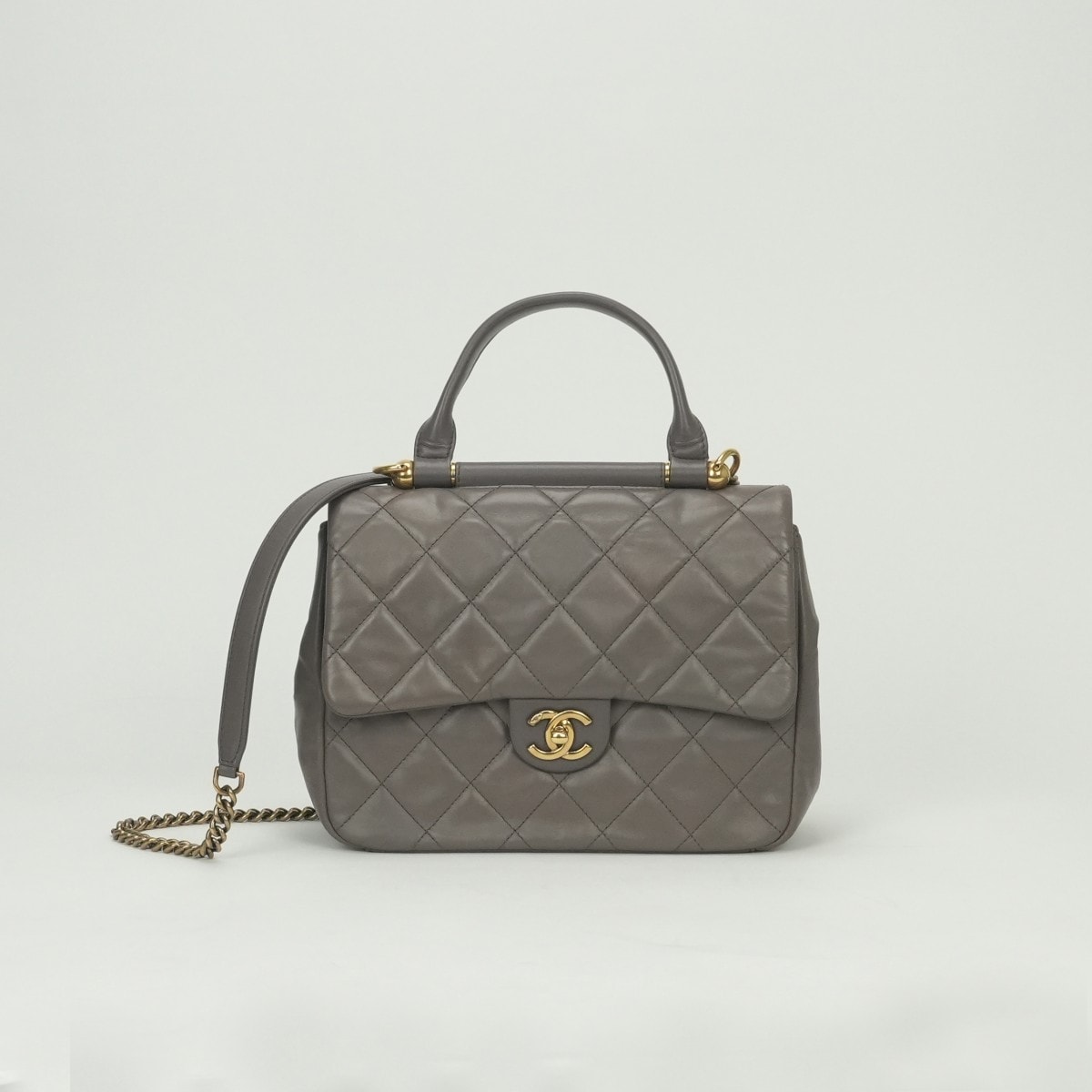 シャネル CHANEL マトラッセ バッグ トートバッグ ショルダーバッグ カーフスキン グレー Gray ゴールド金具 ハンドバッグ 2Way トップハンドル ココマーク ターンロック