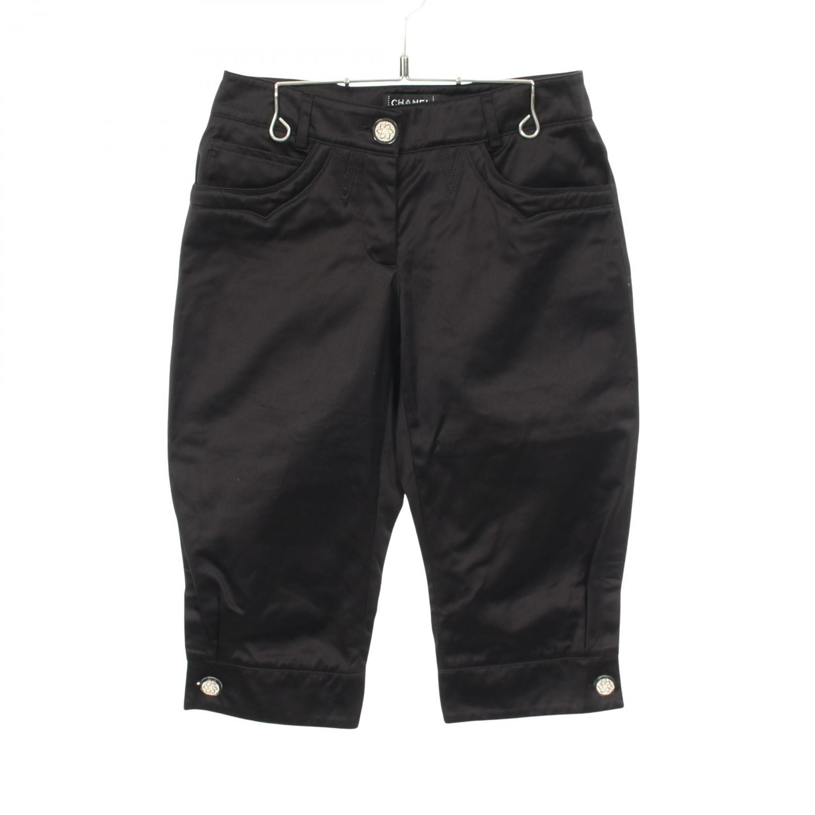 シャネル CHANEL ココマーク ラインストーンフラワーボタン パンツ 衣料品 ボトムス コットン レディース ブラック系 P45186V18055 【中古】