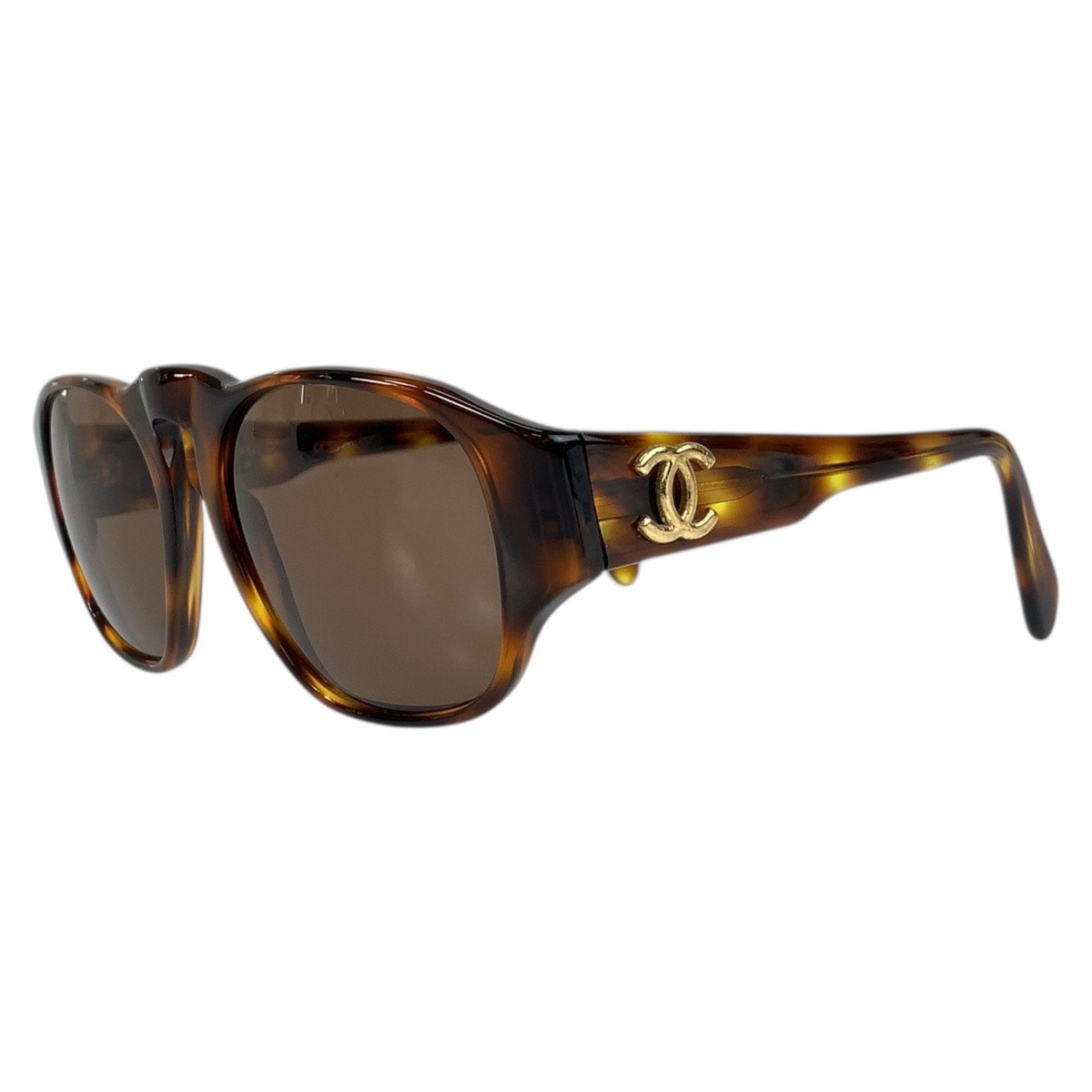 美品 CHANEL シャネル ココマーク マーブル ブラウン ゴールド金具 プラスチック サングラス ウェリントン 506780 【中古】