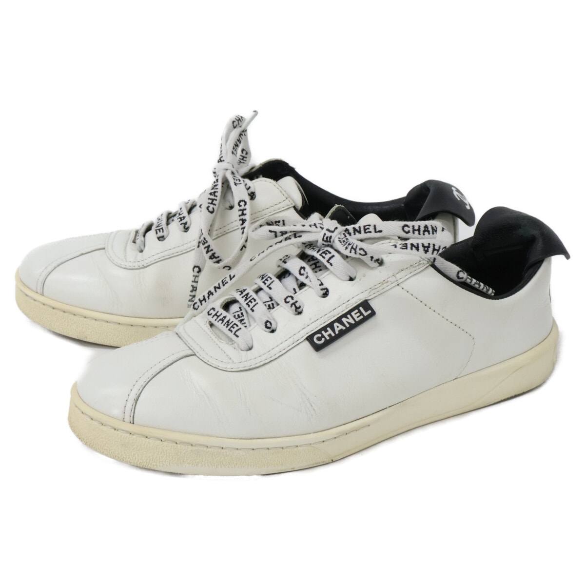 シャネル G34085 カーフスキン クラシック ロゴシューレース ローカットスニーカー 38