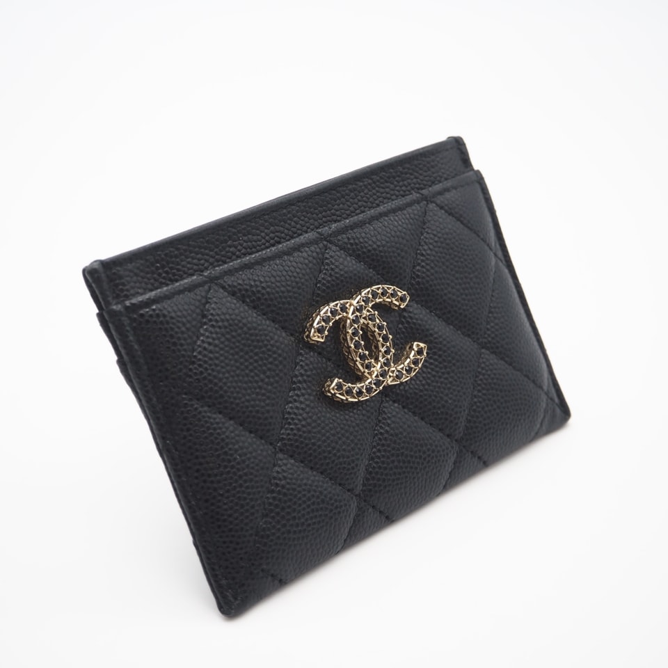 美品 CHANEL シャネル キャビアスキン レザー カードケース AP3401 カードケース ブラック キャビアスキン レディース