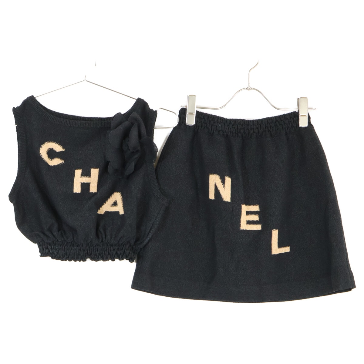 シャネル 【美品/国内正規】P61529K46806 ロゴ入り ニット クロップドトップス/スカート 38