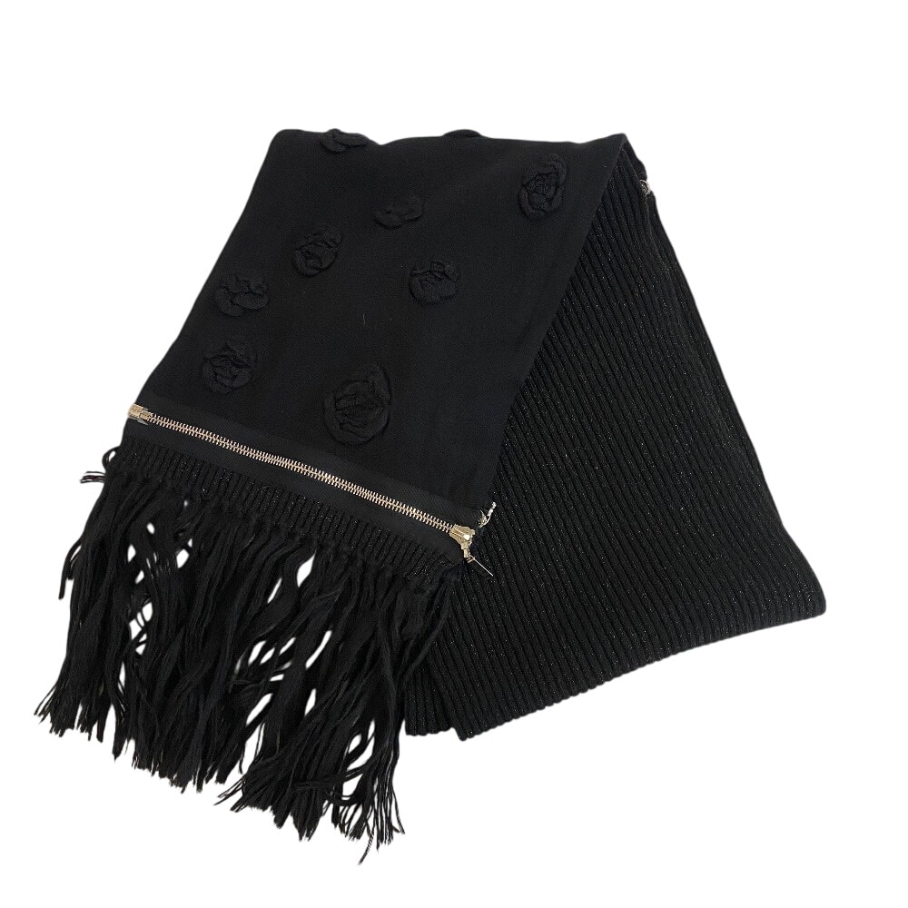 シャネル CHANEL マフラー カメリア ジップ ブラック