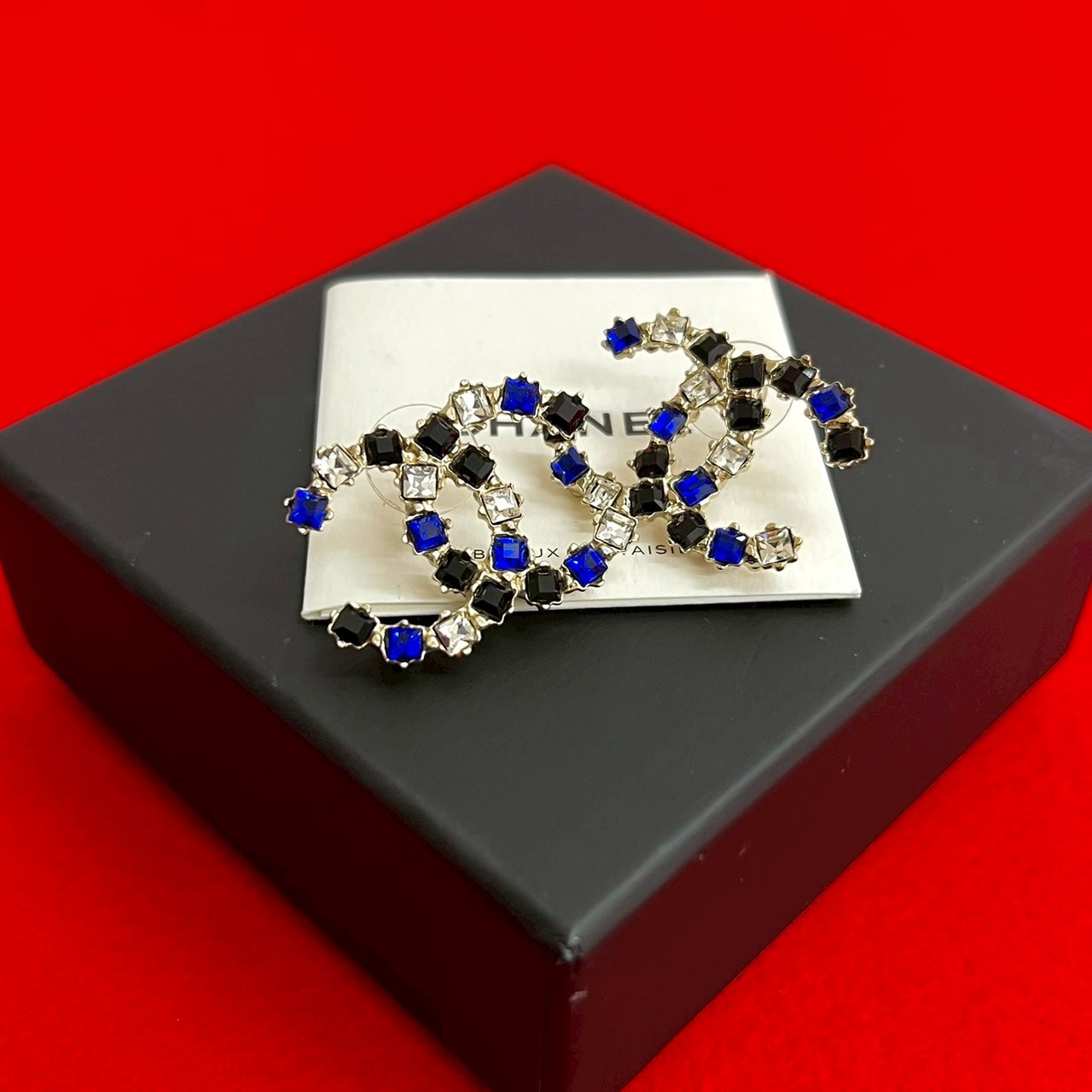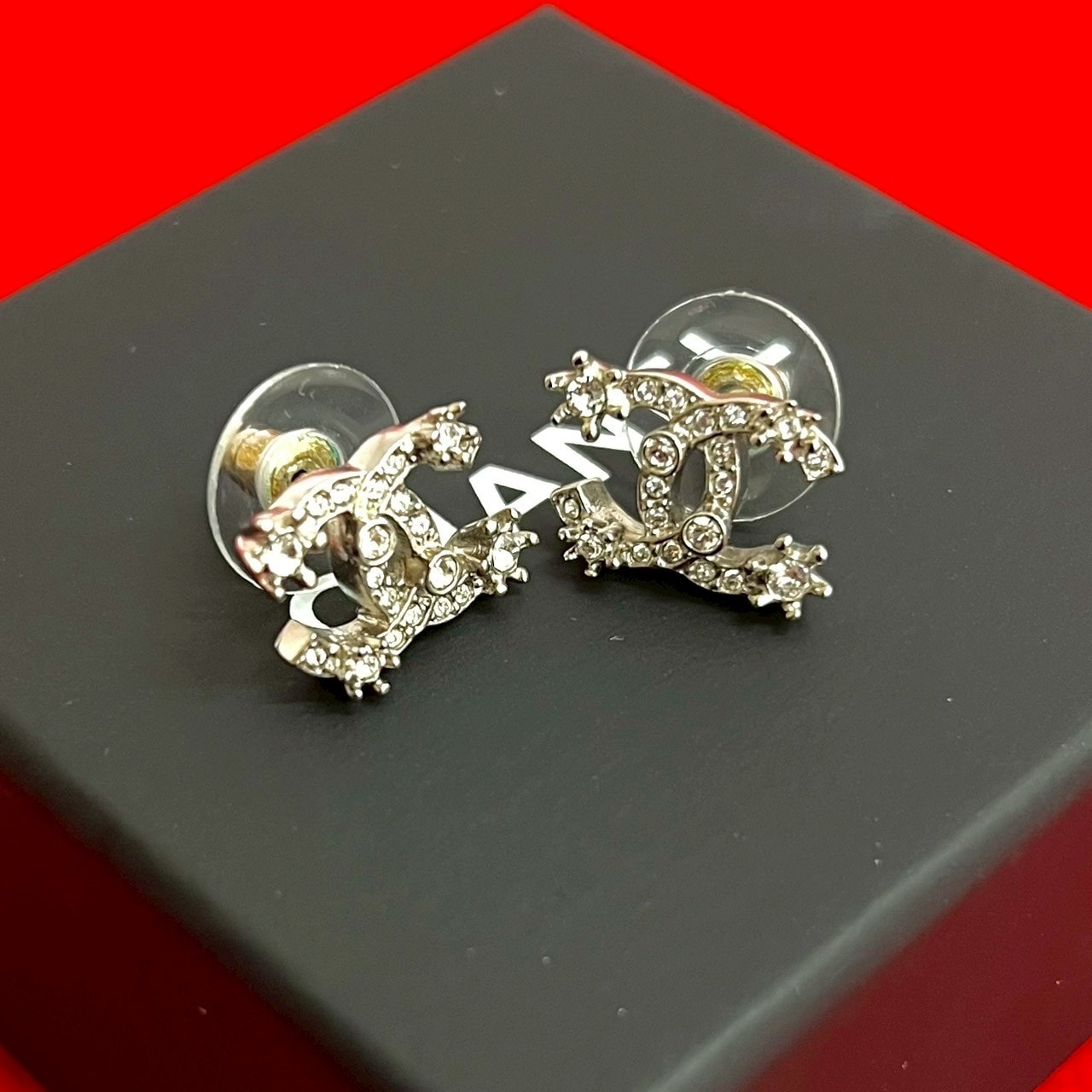 CHANEL シャネル ココマーク スクエア ラインストーン プラスチック イヤリング ブラック
