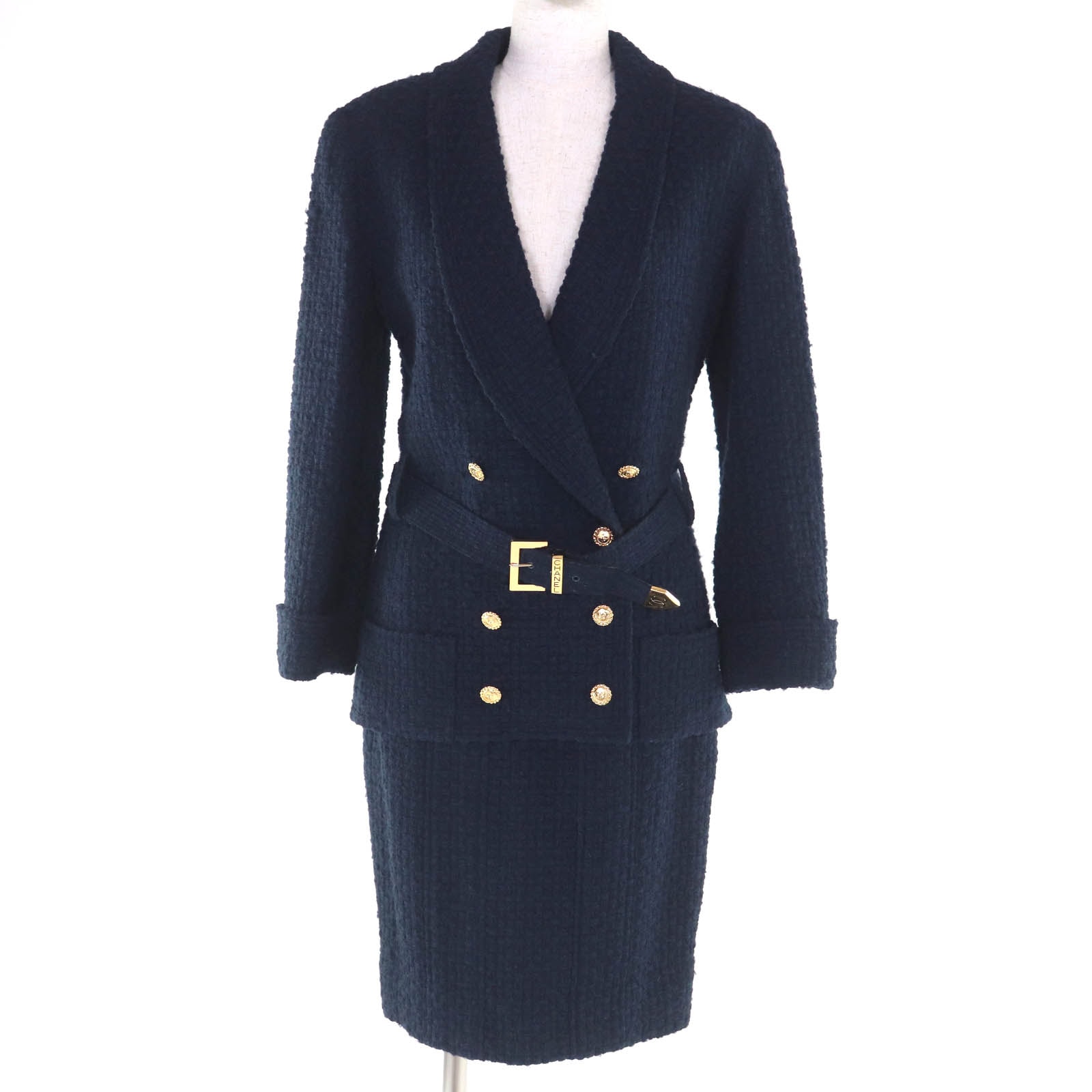 美品 シャネルブティック スーツ ネイビー レディース 36