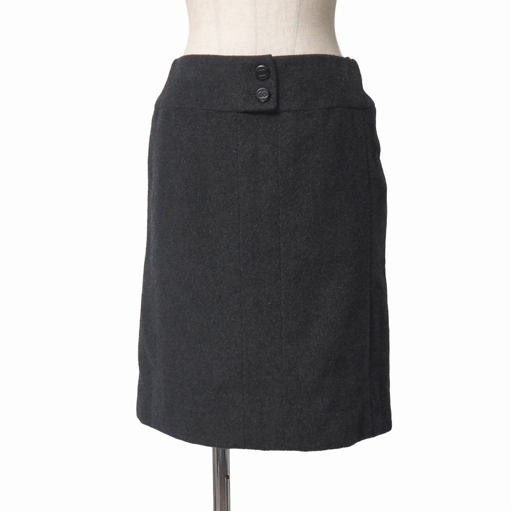 CHANEL シャネル ヴィンテージ スカート サイズ38 98A CCロゴボタン フランス製 ブランド古着【中古】RA7171