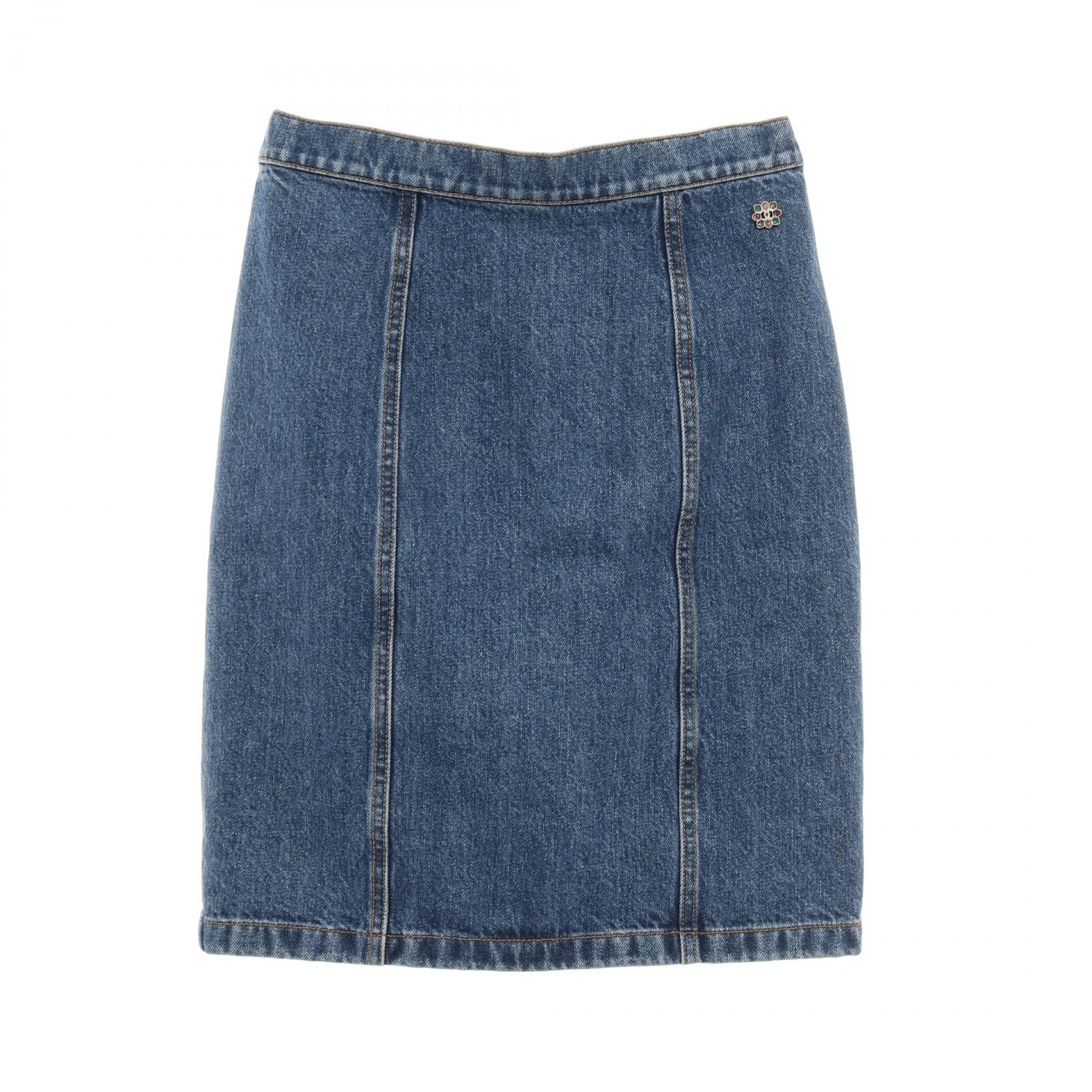 シャネル CHANEL ココマークボタン スカート 衣料品 ボトムス コットン レディース ブルー系 【中古】