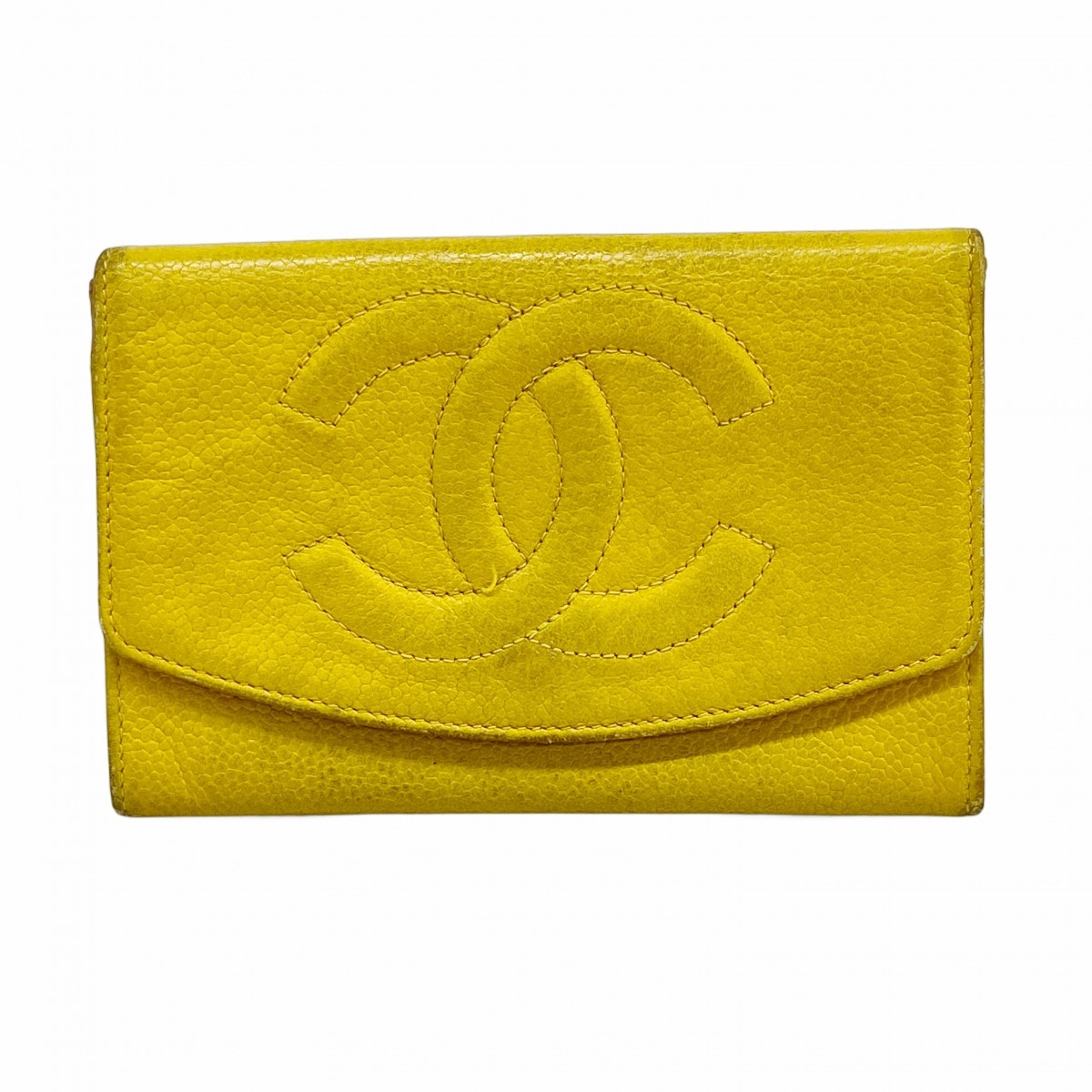 ★SALE【6ce6042-k】シャネル 財布 キャビアスキン イエロー ゴールド金具【中古】レディース