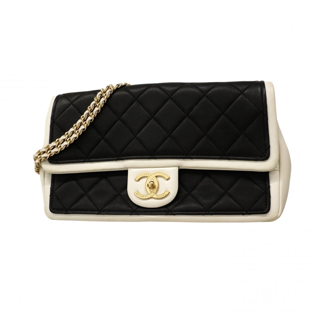 ★最終価格★SALE【6cd4906】シャネル ショルダーバッグ マトラッセ Wチェーン ラムスキン ブラック ホワイト シャンパンゴールド金具【中古】レディース