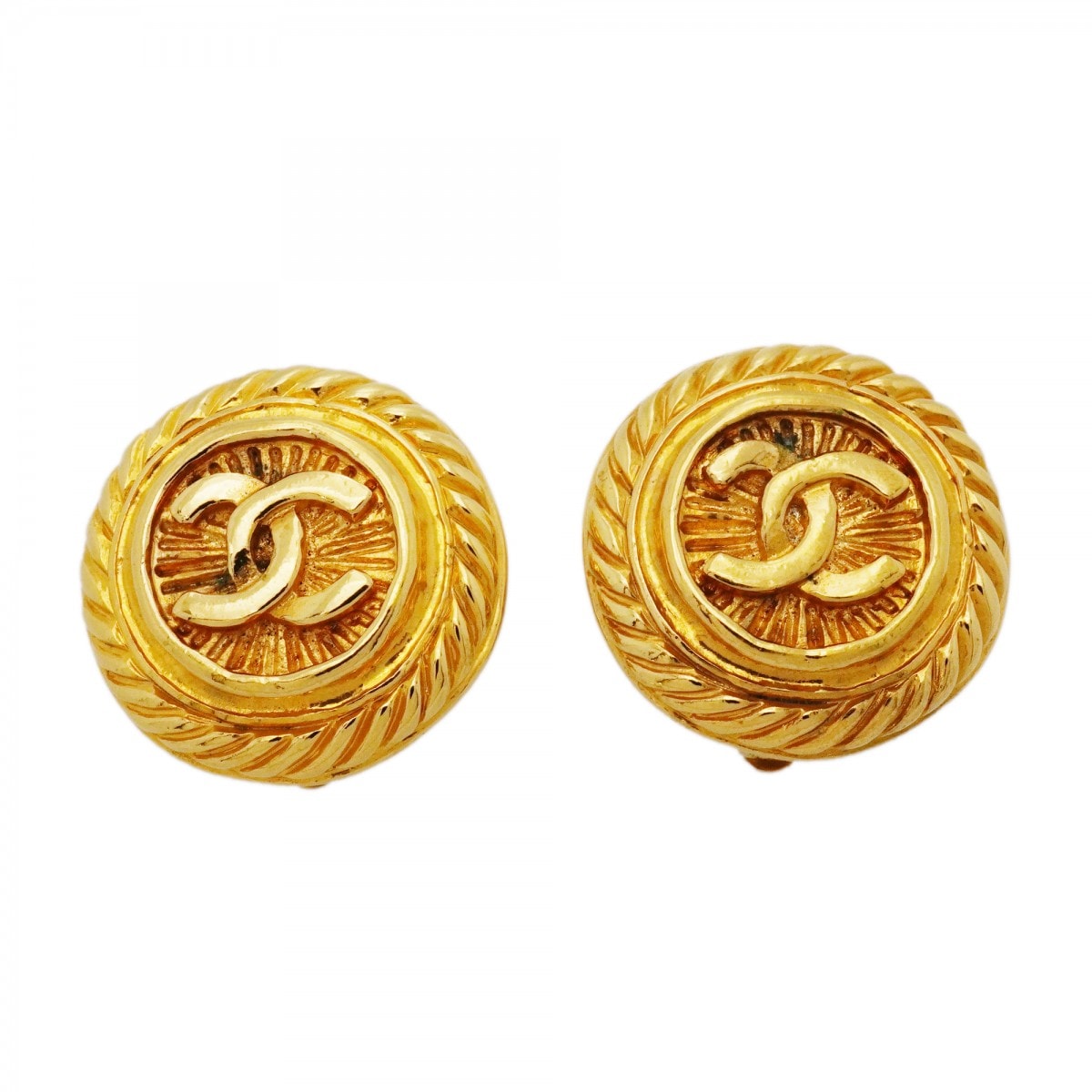 ★最終価格【6jcb0594-k】シャネル イヤリング ヴィンテージ ココマーク マトラッセ 丸型 サークル GPメッキ ゴールド【中古】レディース