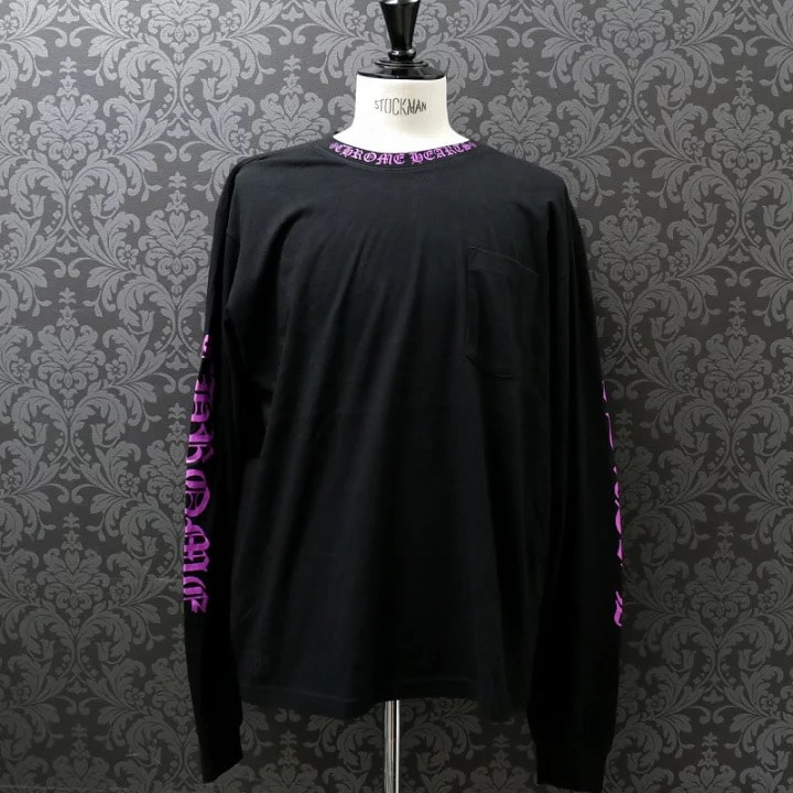 クロムハーツ【CHROMEHEARTS】ピンク/ロゴプリント/ネックプリント/ロングスリーブTシャツ/ロンT/ブラック/XLサイズ
