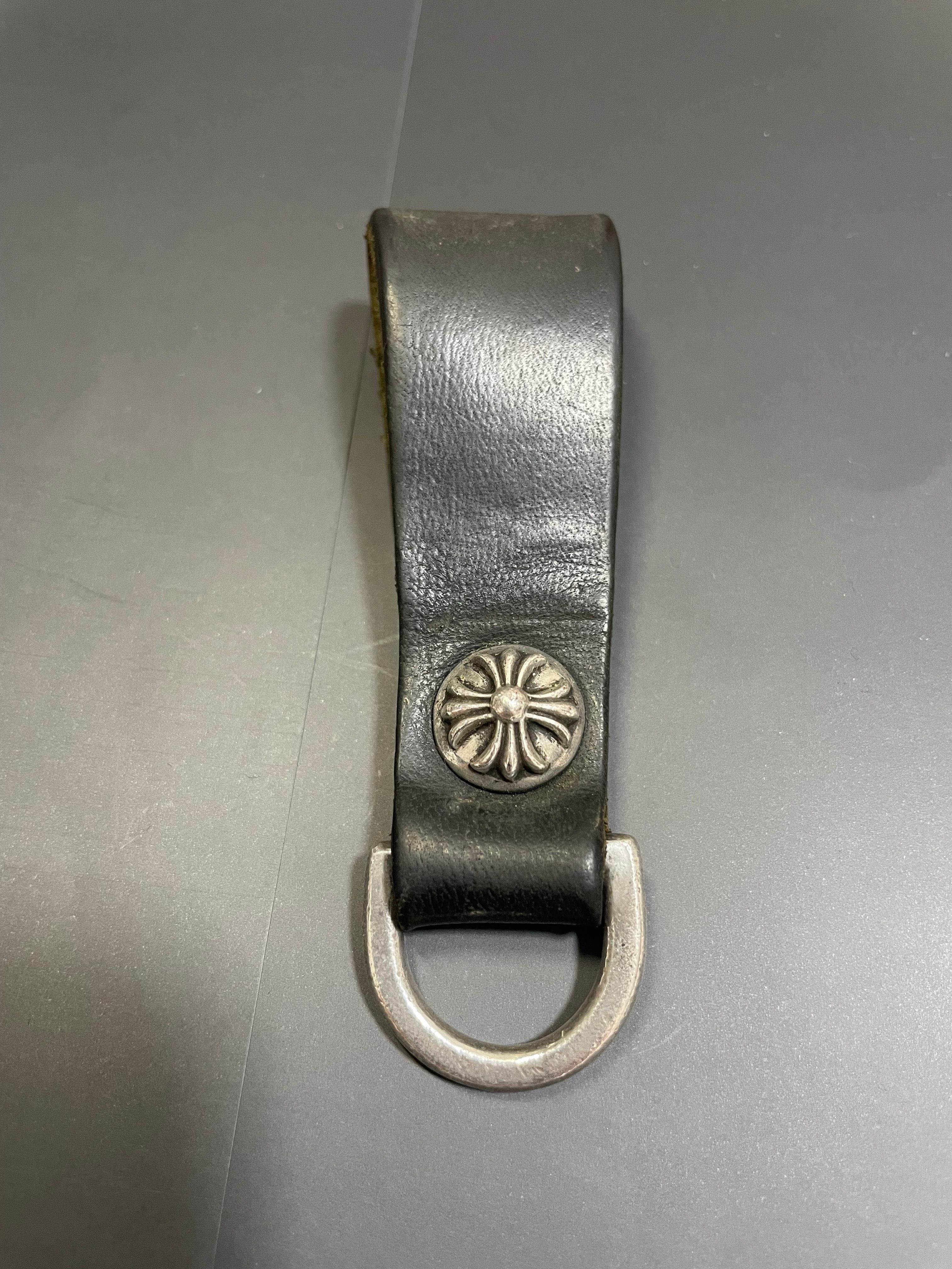 クロムハーツ Dキーリング クロス ボタン ブラック レザー