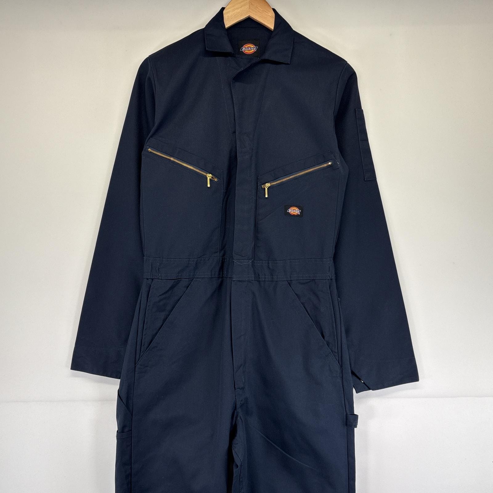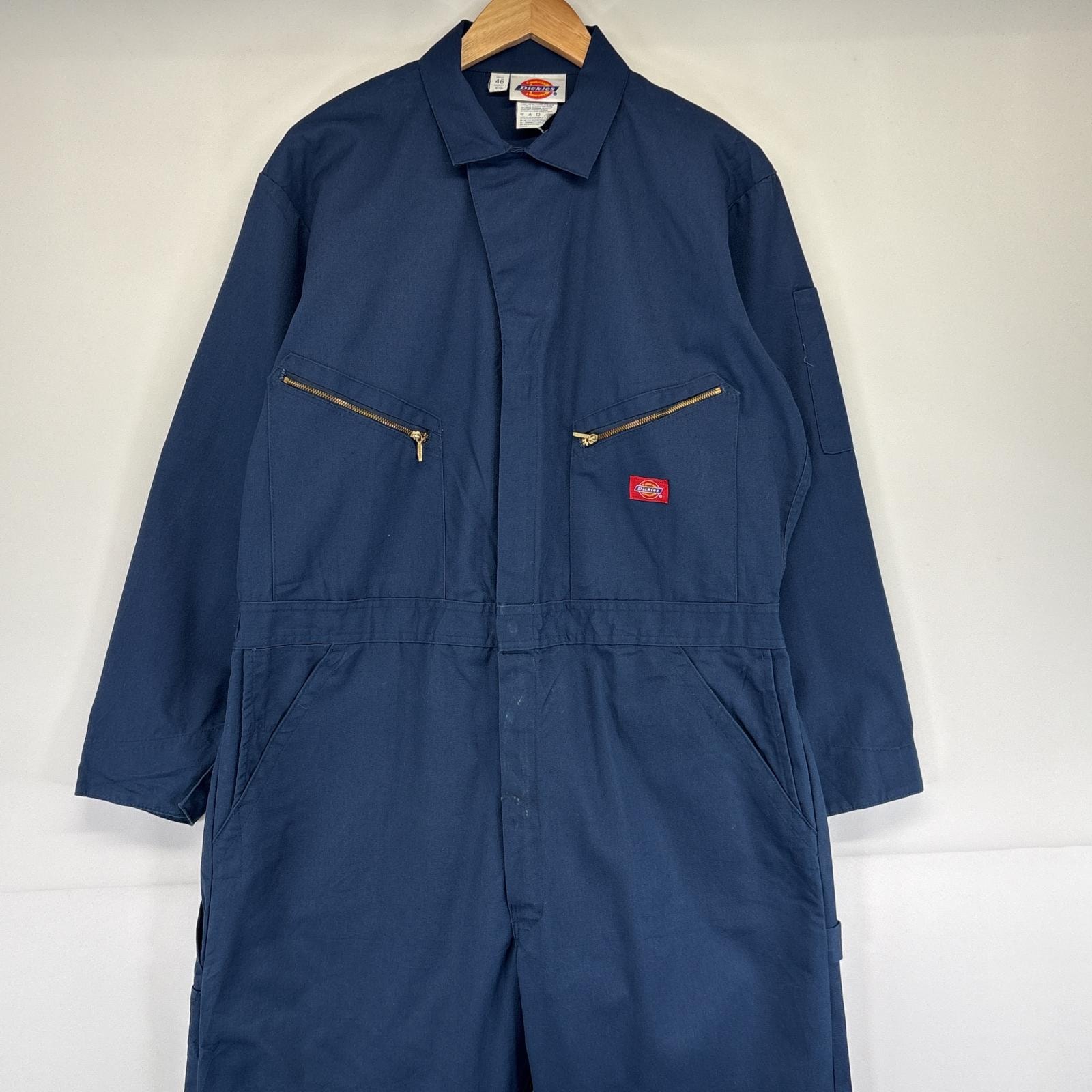 古着 ディッキーズ Dickies 長袖つなぎ オールインワン ワーク ジップアップ 作業着 TALONジップ 大きいサイズ 無地 44 ネイビー メンズ