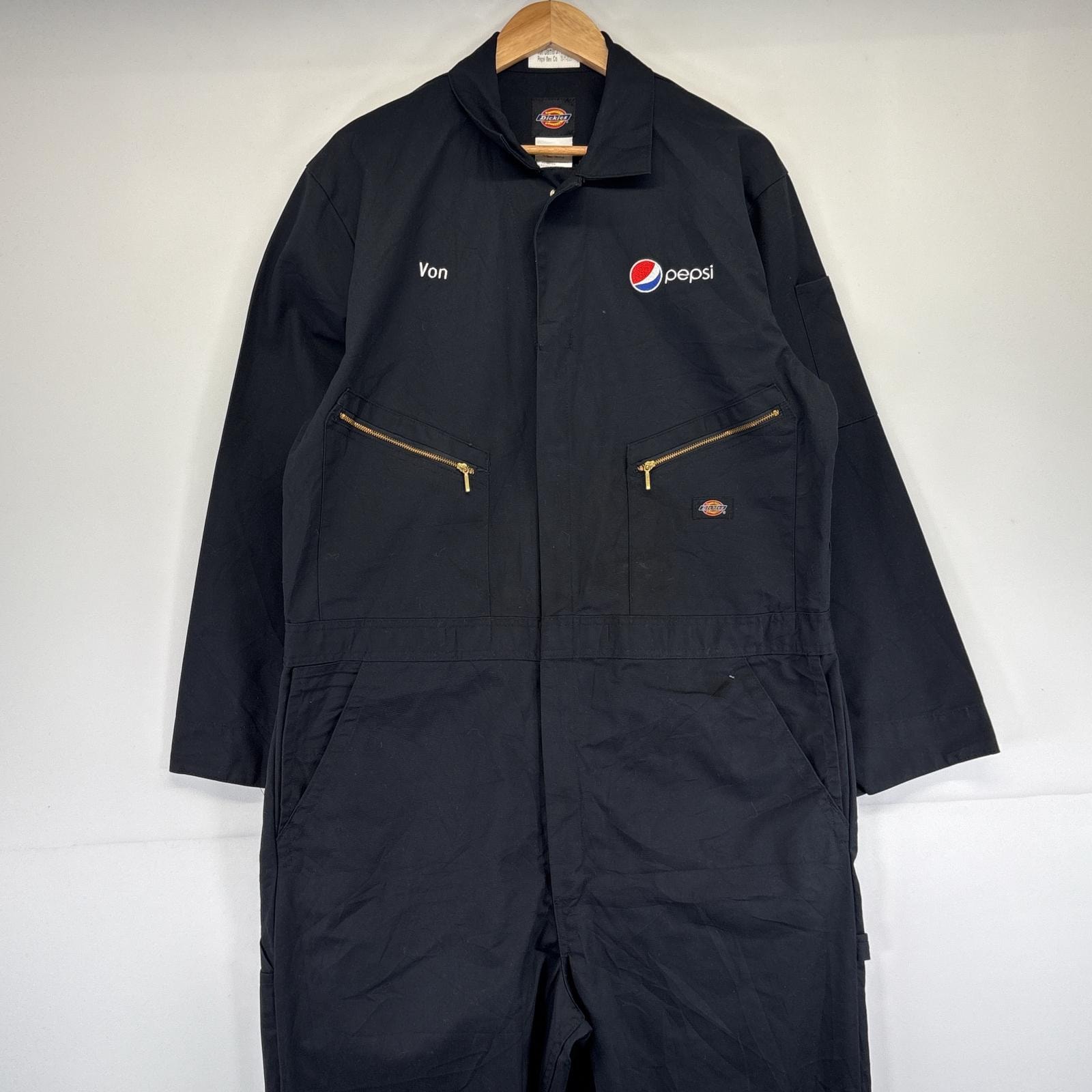 古着 ディッキーズ Dickies 長袖つなぎ オールインワン ワーク 作業着 ワンポイントロゴ 企業ロゴ ペプシ 刺繍 XLR ブラック メンズ