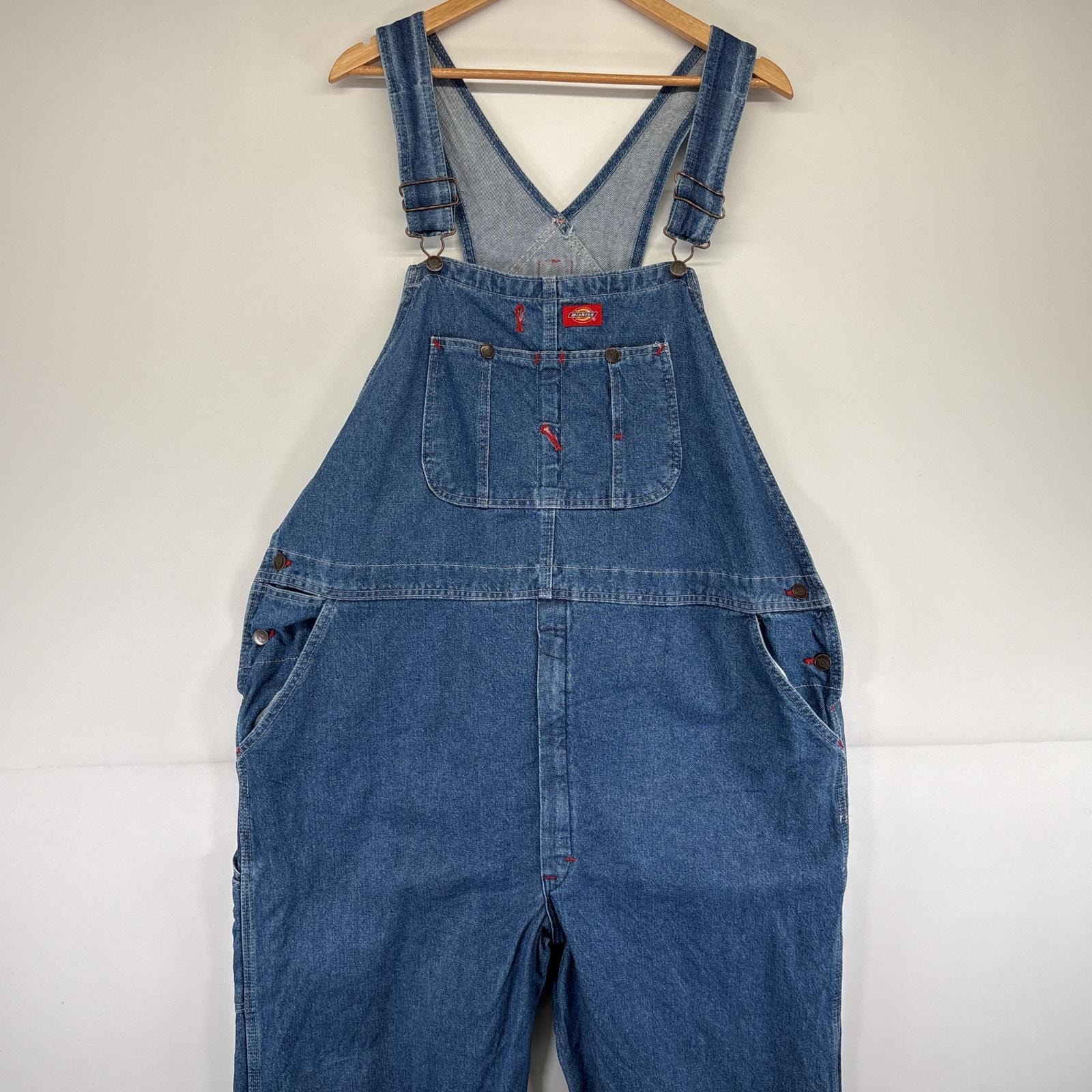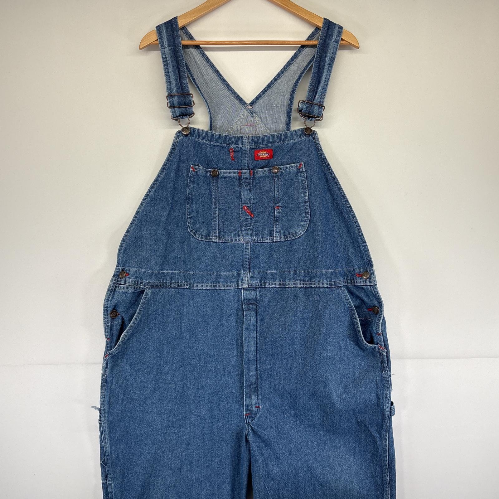 古着 ディッキーズ Dickies オーバーオール デニム ワーク ワンポイントロゴ 大きいサイズ 胸ポケット w44 L30 ブルー メンズ