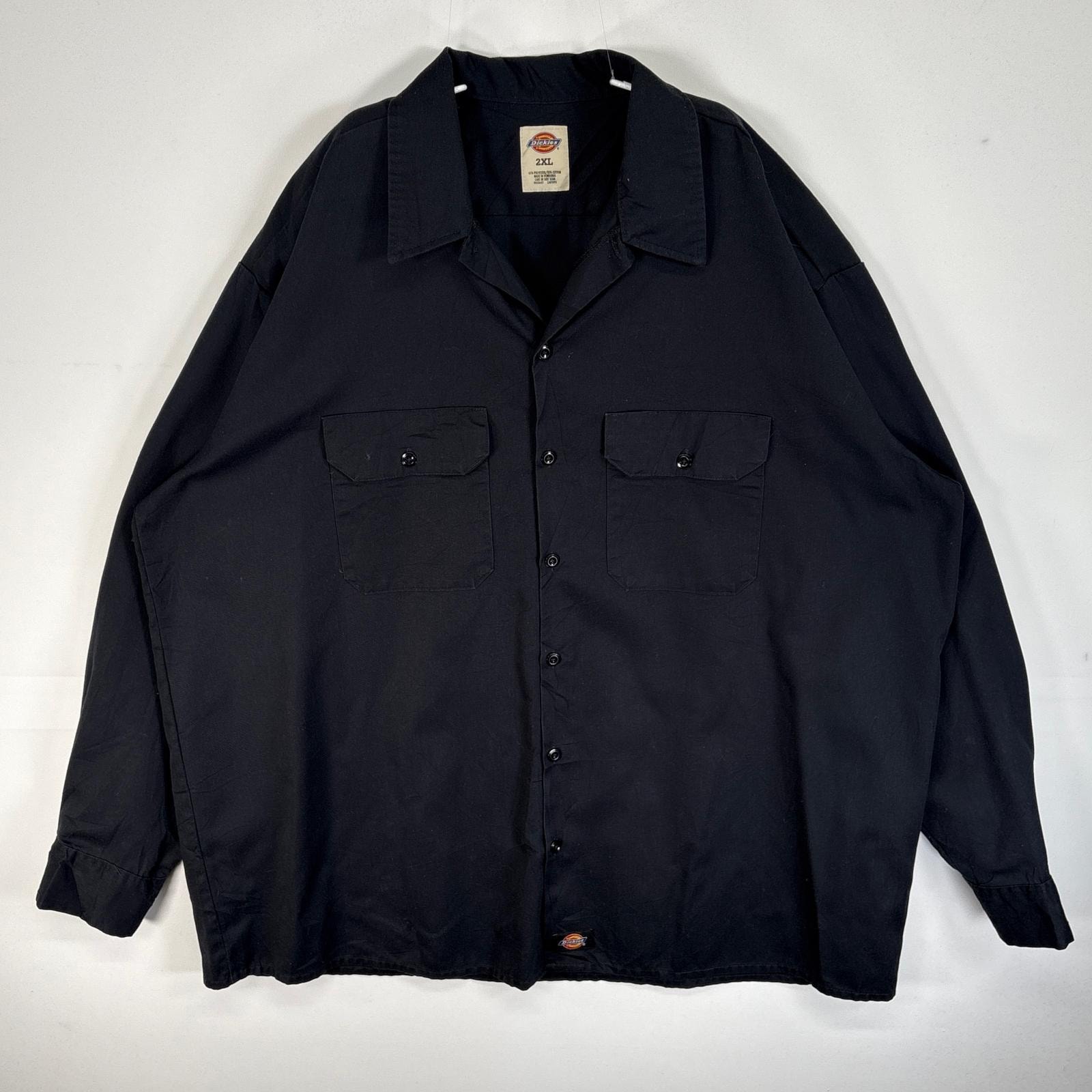 古着 ディッキーズ Dickies 長袖シャツ ワーク 作業着 フラップポケ 大きいサイズ ワンポイント ロゴ 2XL ブラック 無地 メンズ