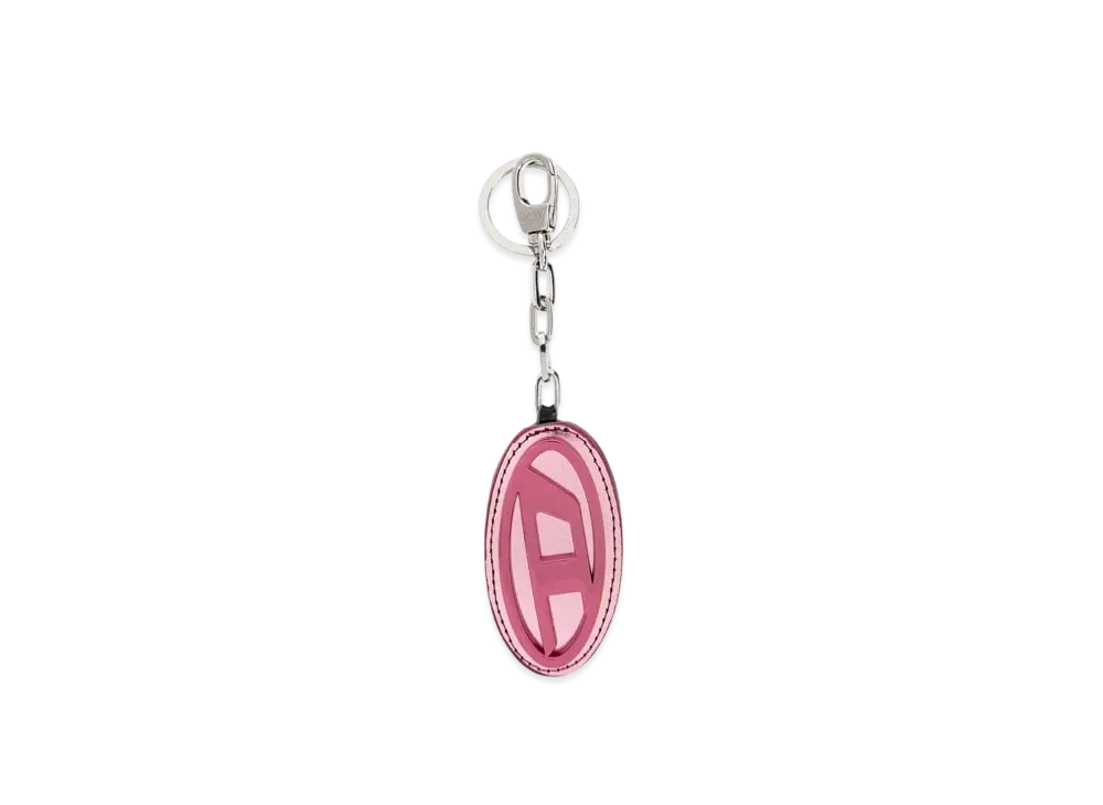 Diesel Holy D Mirror Leather Logo Plaque Keyring "Pink"