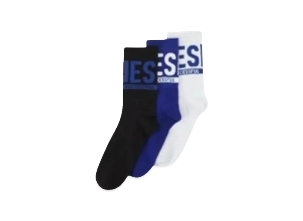 Diesel SKM Threepack Of Logo Cuff Socks "Black/Blue/White"