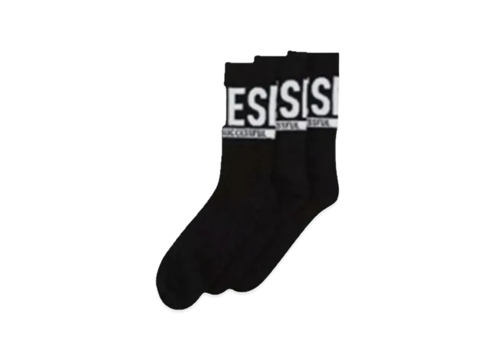 Diesel SKM Threepack Of Logo Cuff Socks "All Black"