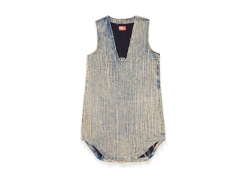Diesel De-Laris-Dress-S2 Distressed Effect Denim Dress "Medium Blue"