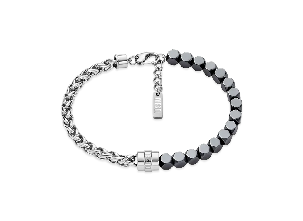 Diesel Dx1647931 Stainless Steel And Hematite Beaded Bracelet "Silver/Black"