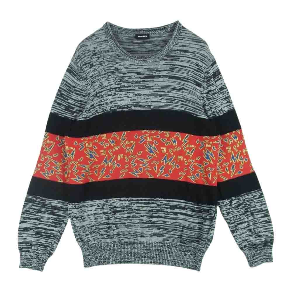 DIESEL ディーゼル ニット マルチカラー ニット セーター コットン レーヨン チュニジア製 グレー系 レッド系 S【中古】