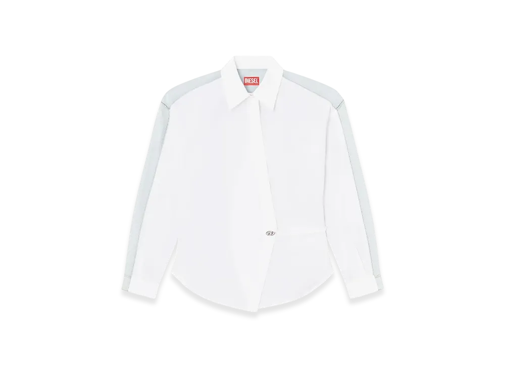 Diesel C-Delphi-Den Wrap Shirt In Poplin And Denim "Blue White"