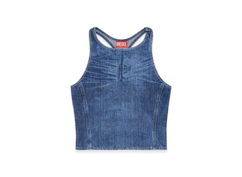 Diesel De-Plaque-S Racerback Top In Rhinestone Denim "Medium Blue"