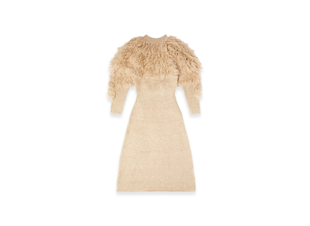 Diesel M-Pace Turtleneck Dress In Shaggy Mohair "Beige"